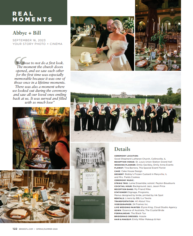 In September 2023, Abbye married her husband Bill, earning a feature in Saint Louis Bride magazine — which may be her favorite print placement and event to plan to date!